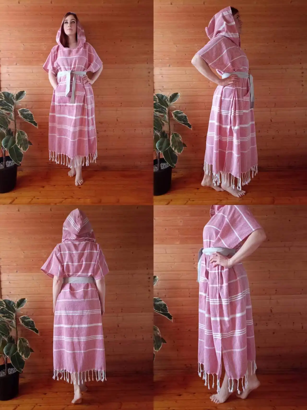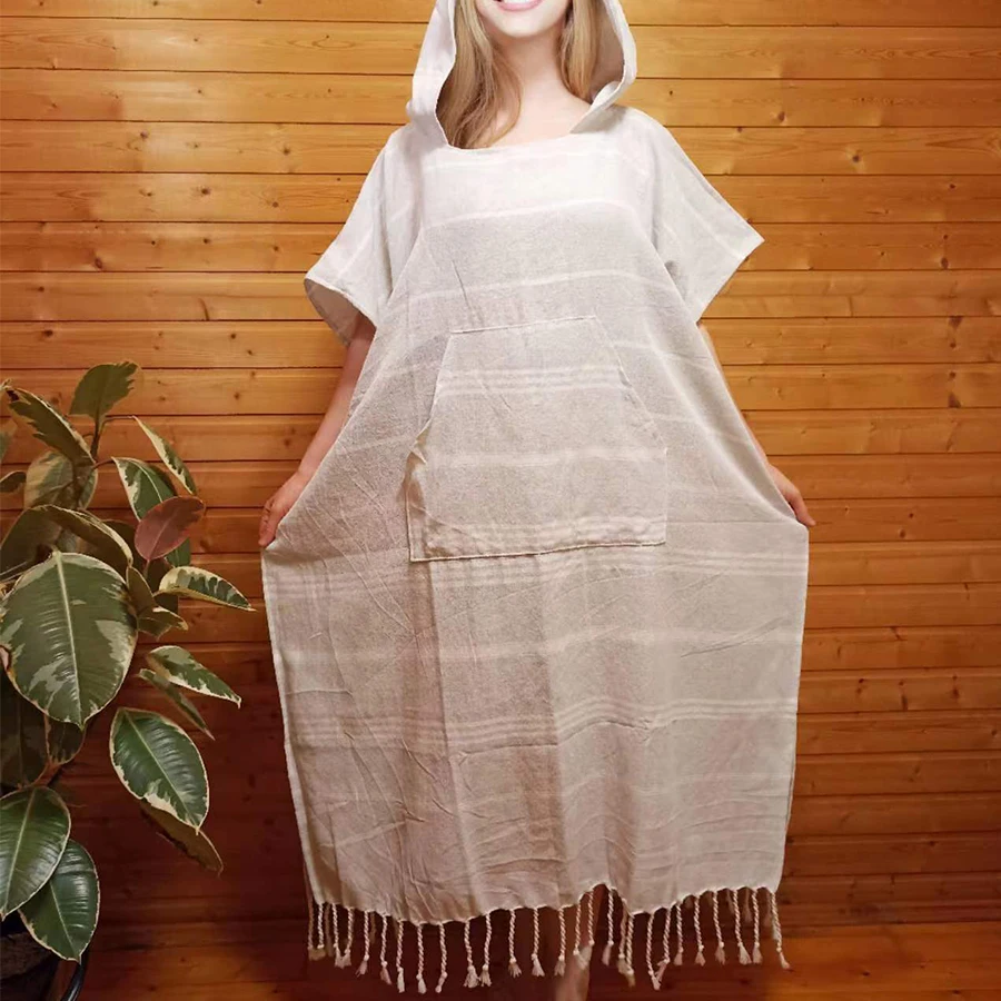 Discover the perfect blend of luxury and practicality with this premium Turkish beach towel bathrobe. Crafted from 100% absorbent cotton, this innovative wearable design lets you change with confidence anywhere—from the beach to the campsite.