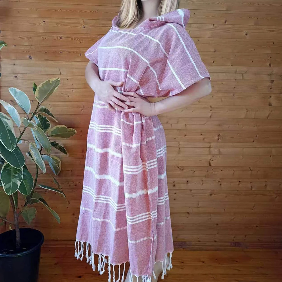 Whether you're catching waves at sunrise, lounging poolside, or exploring remote coastal campsites, this Turkish towel bathrobe adapts to your lifestyle. The generous size provides full coverage, while the lightweight fabric packs down small in your beach bag or camping gear.